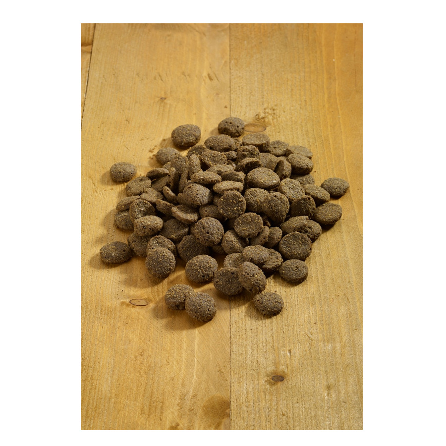 Obiloviny (kukuřice, rýže), maso a vedlejší živočišné produkty (drůbeží moučka, jehněčí moučka), ryby a vedlejší rybí produkty (lososová moučka), zelenina (brambory*), oleje a tuky, vedlejší rostlinné produkty (sušené řepné řízky), minerální látky, vejce a vaječné výrobky (sušená vejce, droždí*, řasy (Ascophyllum nodosum*), semena (lněné semínko), bylinky*, zelené ústřice* (Perna canaliculus) (0,05 %), *sušené